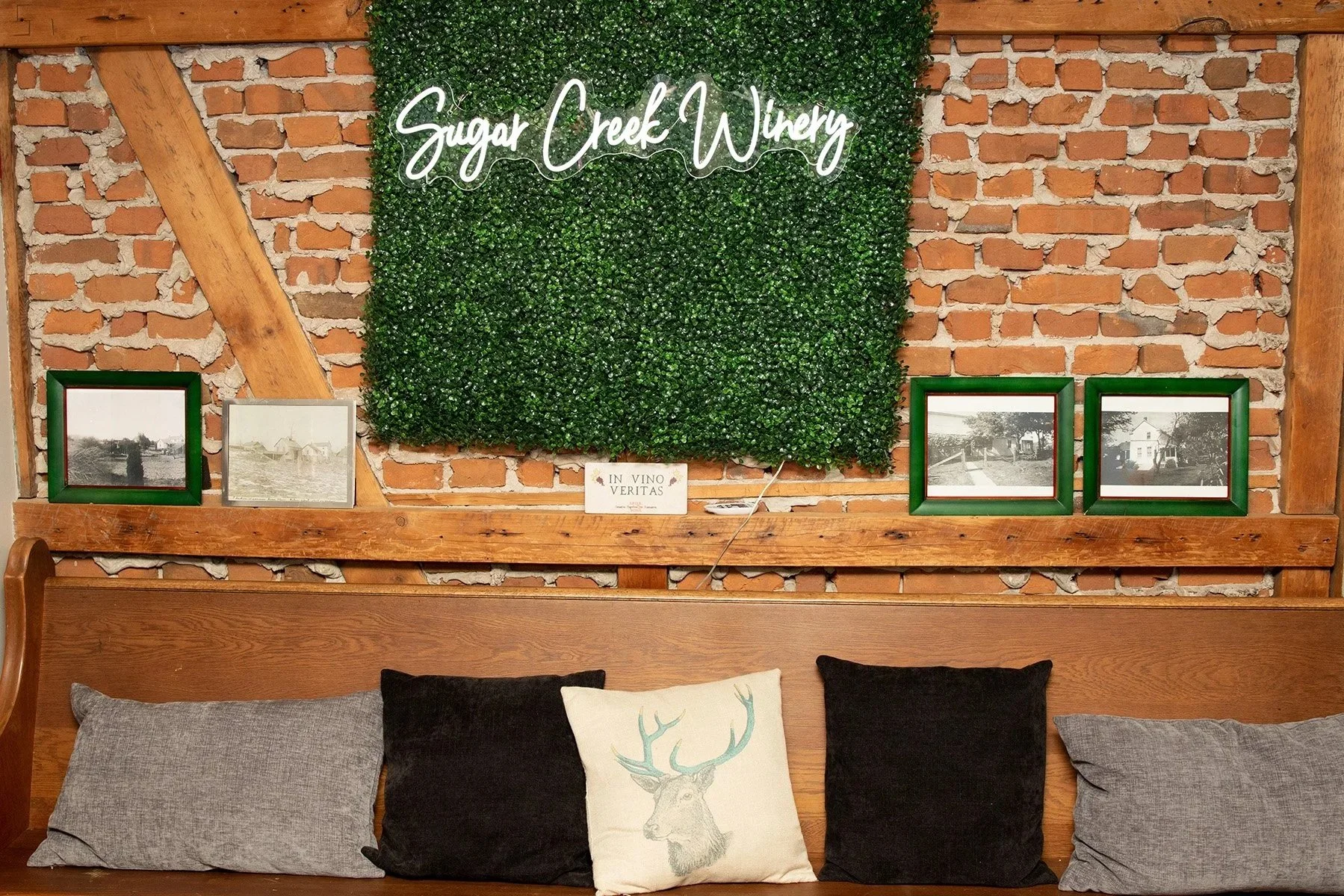 Inside our main building you will find wine tasting, the Judgment Tree bar, shop (to purchase snacks, beer, and merch), restrooms, and the hearth room with more seating options.