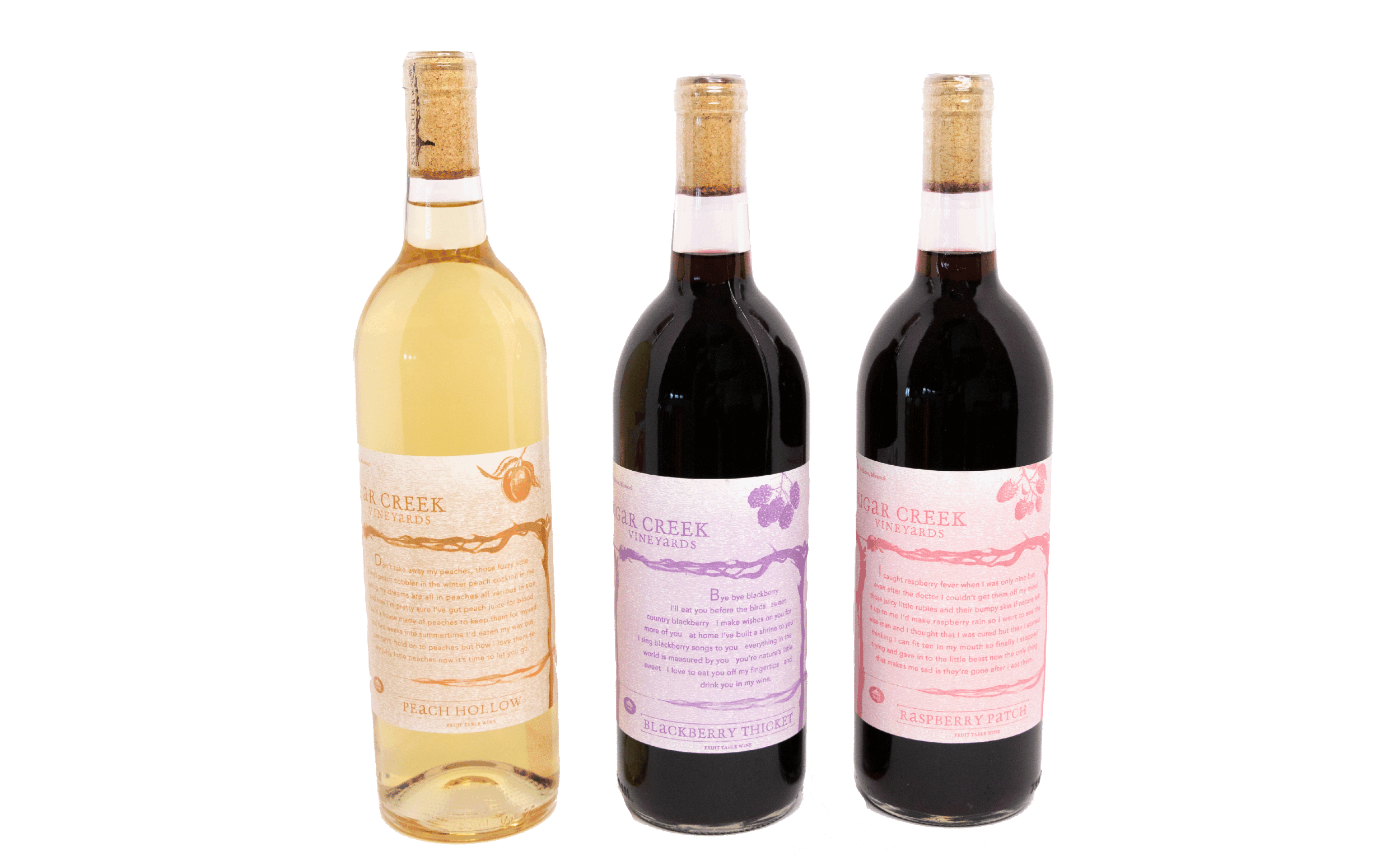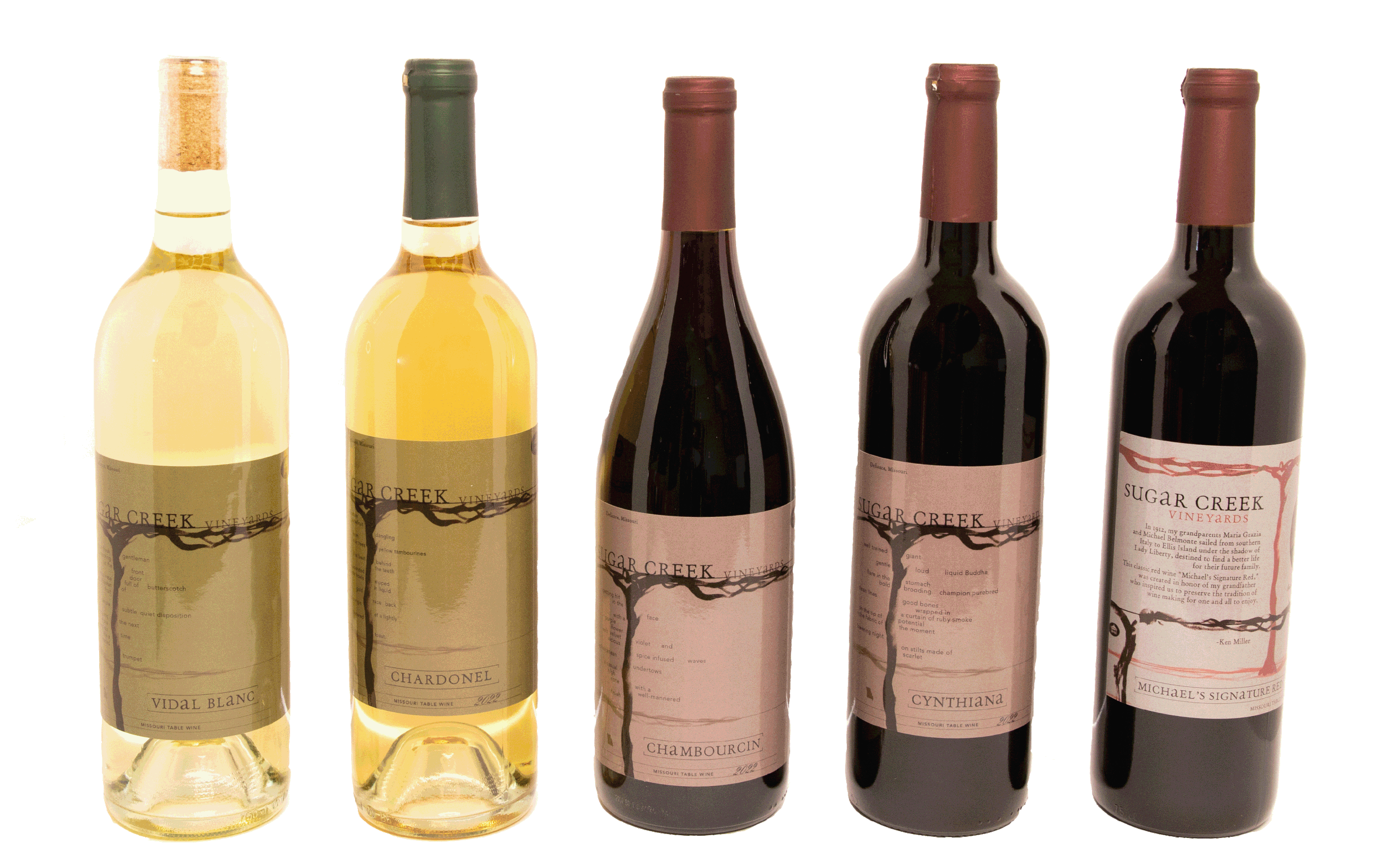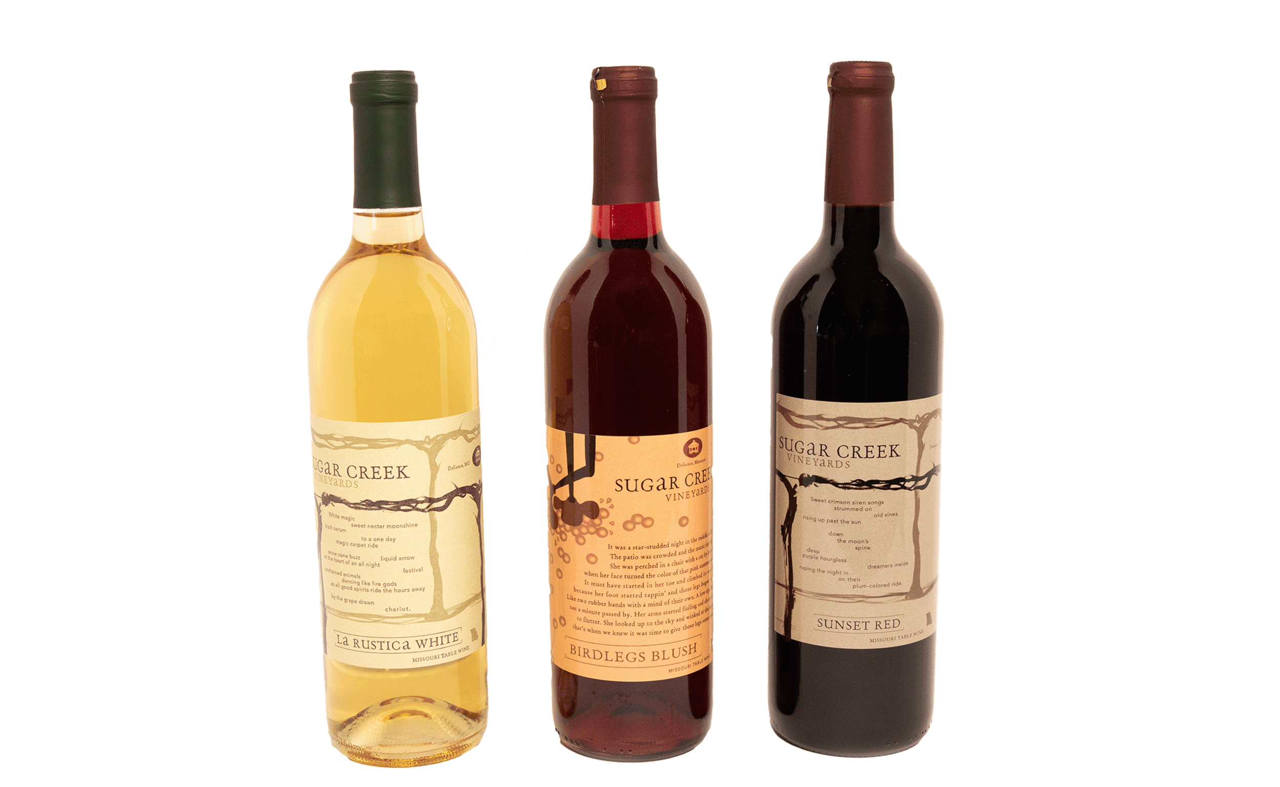 Sweet white made from grapes in our vineyard plus local Missouri grapes. Light in texture, like biting into a fresh peach.